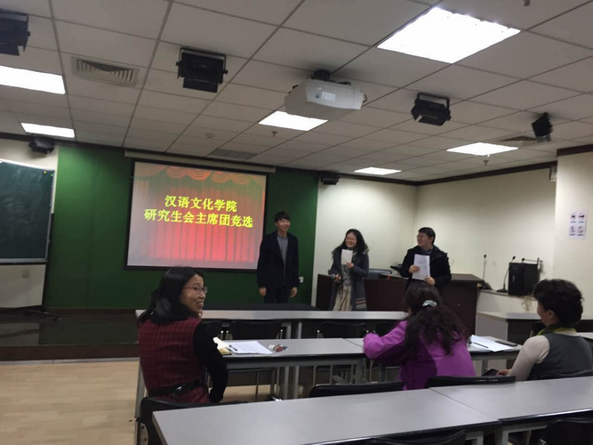大会由上届研会学术部部长陈路遥主持。首先,主持人对本次研会主席换届大会的竞选人进行了简要介绍。此次换届大会共六人参选,分别是:郭瀚齐、刘琪瑶、吴佩歆、李欣、李岩、韩文慧。介绍完毕,大会进入候选人个人阐释环节,每位候选人分别从性格特点、工作经验、对员工会未来的发展规划等多方面进行了8分钟的展示。阐述过程异彩纷呈,或用精致的PPT,或脱稿演说,他们的精彩演讲不时赢得会场阵阵掌声。