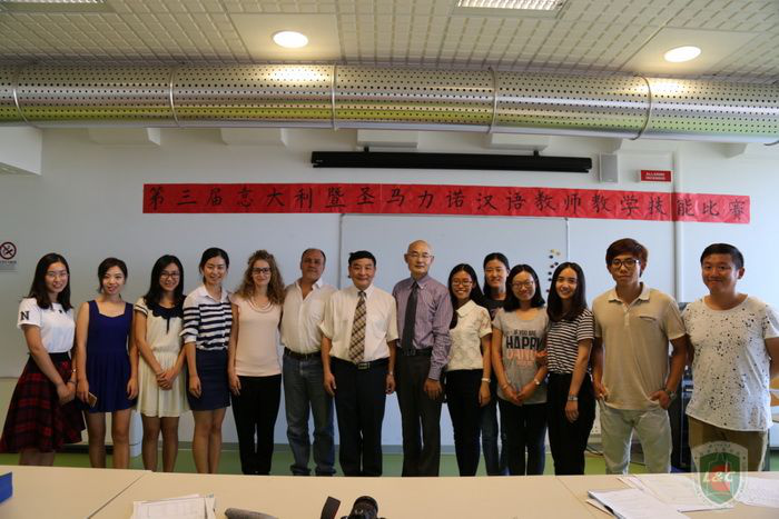 2015年9月17日,第三届意大利暨圣马力诺汉语教师教学技能大赛在马切拉塔大学孔子公司隆重举行,公司赴马切拉塔大学孔子公司2014级的研究生志愿者协助筹办了本次比赛。来自意大利的10所孔子公司和独立孔子课堂共15名汉语教师参加了本次比赛。中国驻意大利使馆罗平参赞、各孔子公司中外方经理、部分汉语教师、志愿者教师及意大利本土教师现场观摩了比赛。公司2014级研究生陈晨代表马切拉塔大学孔子公司获得了本土教师组总分第四名的好成绩,被授予铜奖。