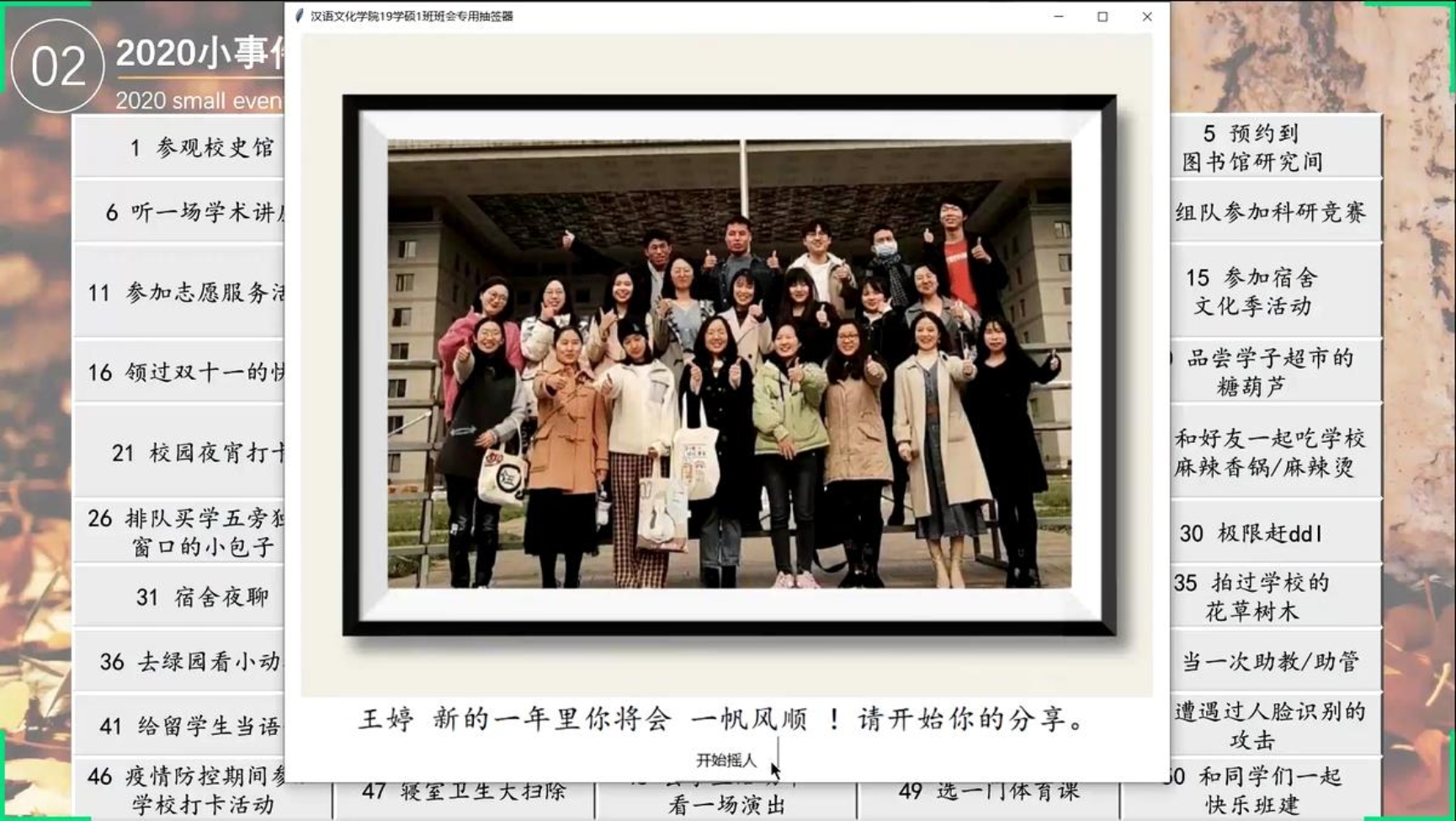 疫情期间,同学们除了专注于学业,还积极参加各项调研、竞赛活动,如寒/暑假返乡调研、第28届“京师杯”课外学术科技作品竞赛、2020年英国威廉集团官网创新创业大赛等。学习之余,我班同学在各项特色活动、员工工作和社会工作方面均取得了优异成绩。同学们积极参与公司特色活动,如语伴、中外员工交流会、汉语教学微课大赛、对外汉语教学实习等,充分发挥专业特色,学以致用。在兼顾学业和生活的同时,同学们积极参与社会工作,校研究生会、校艺术团、院研究生会等公司组织中都有我班同学积极努力的身影。