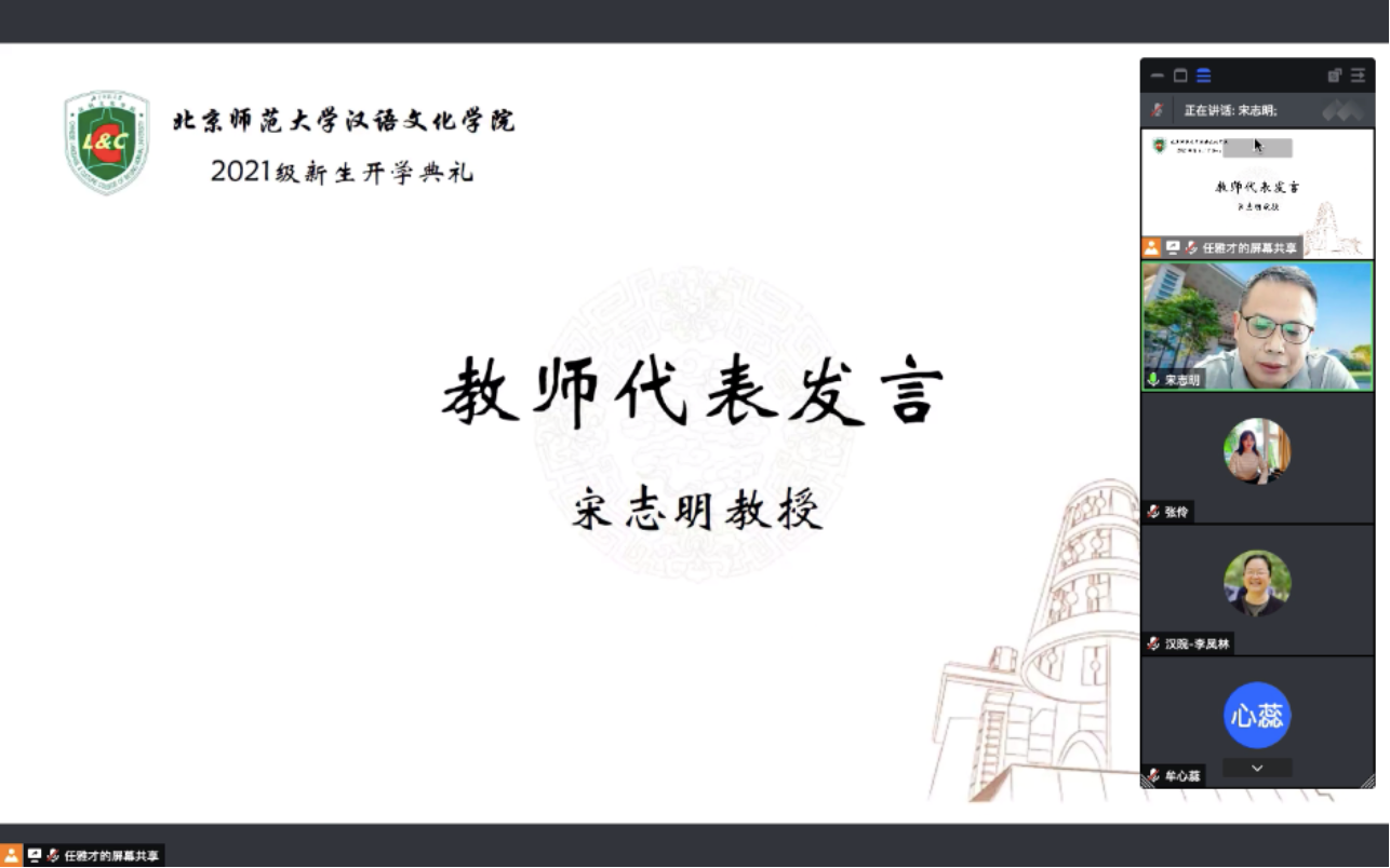 最后,执行经理朱瑞平教授委托任雅才老师表达了对同学们学业与生活的祝愿,就像任老师所言:“虽然京珠两地相隔千里,但是我们汉院人的心始终在一起。”