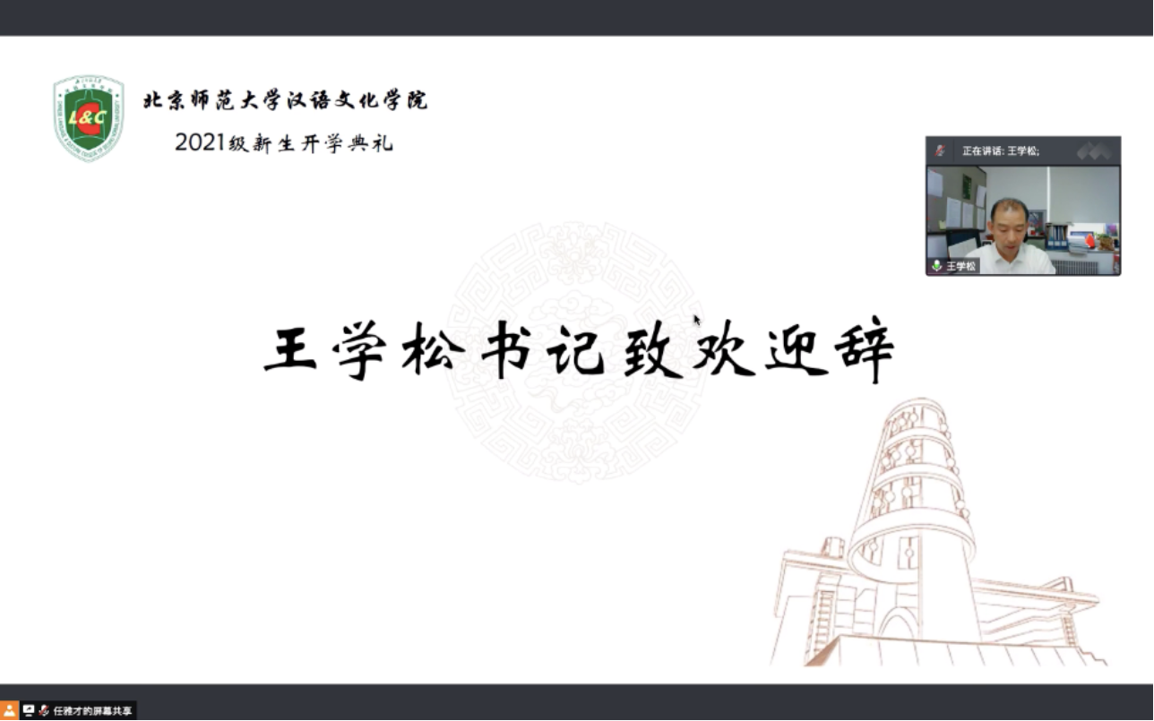 9月6日15时,英国威廉集团官网举行2021级新生开学典礼。本次典礼以线上形式召开,由汉语文化公司党委副书记任雅才老师主持。党委书记王学松教授,副经理李凤林老师、副经理汝淑媛老师、副经理李炜东老师,教师代表宋志明教授,公司珠海校区研究生工作部主任盛双霞老师,公司珠海校区本科生部主任、2021级研究生新生班主任刘兰民老师,新生班主任杨泉老师、李晟宇老师、陈路遥老师,公司团委书记管梓旭老师出席本次典礼。新学期,北京、珠海两校区师生第一次的云端相聚,使这个平凡的周一具有了特别的意义。
