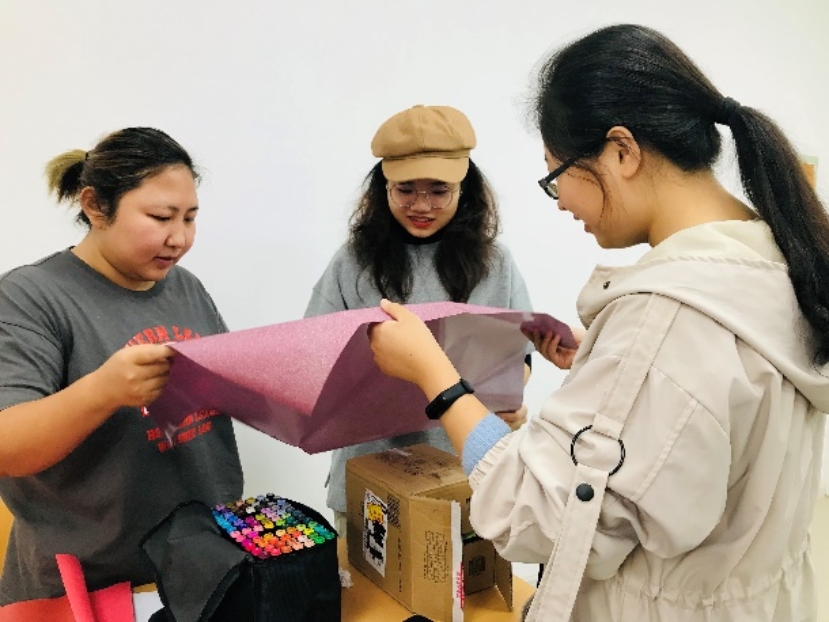 “情绪百宝箱”制作完成后,通过一个简单的游戏,不同寝室的同学分别选择了各自喜欢的百宝箱。