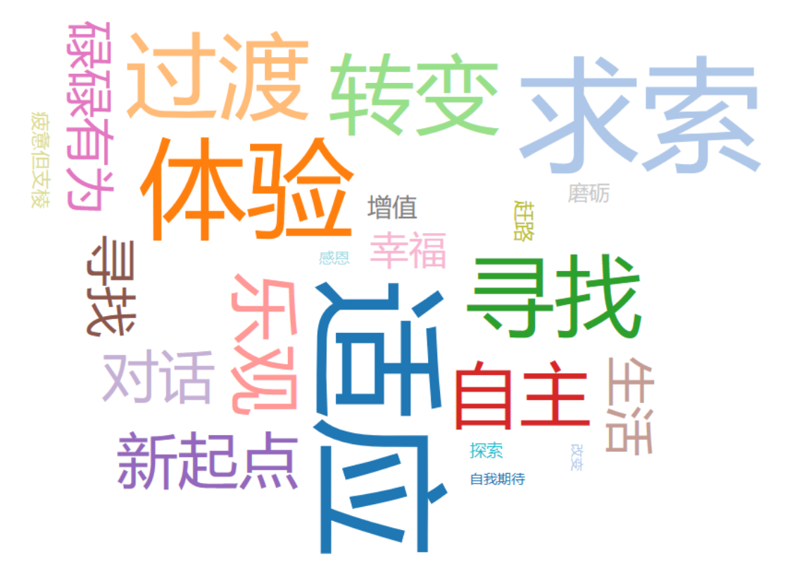 接下来进行的是“个人年度复盘”环节,由同学依次发言,围绕自己的“个人年度关键词”回顾过去一年并展望新年。同学们的关键词大多与“改变”、“寻找”、“进步”、“磨砺”、“感恩”相关。