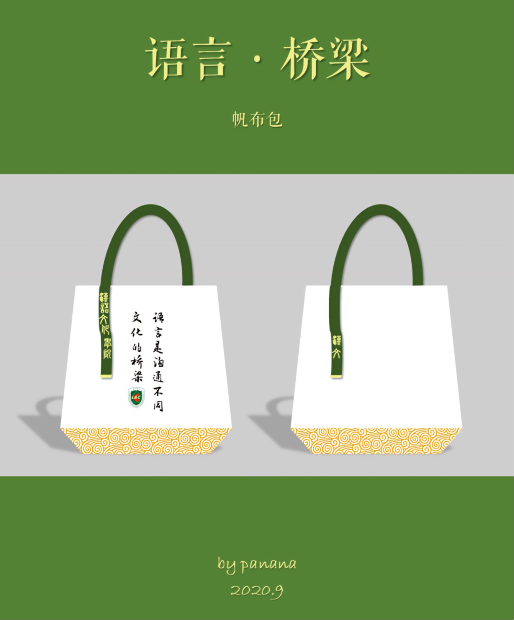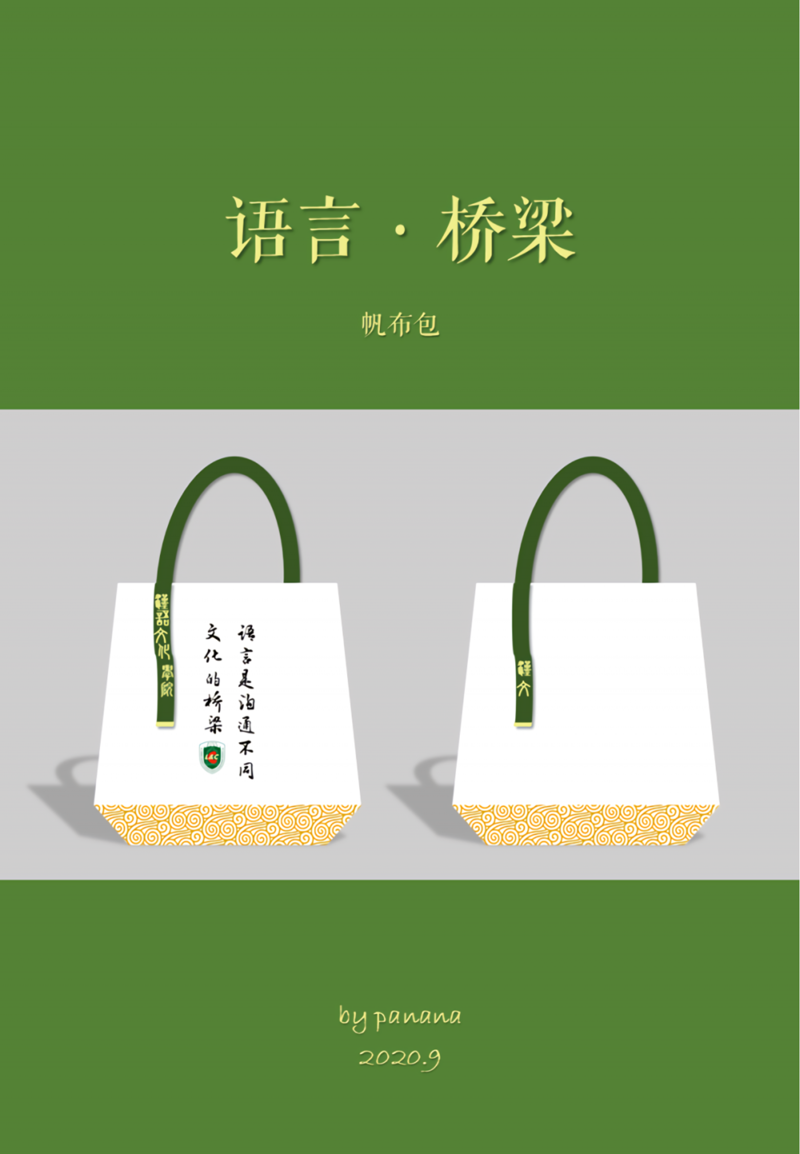 恭喜潘雨婷同学设计的《语言·桥梁》帆布包作品获得一等奖!