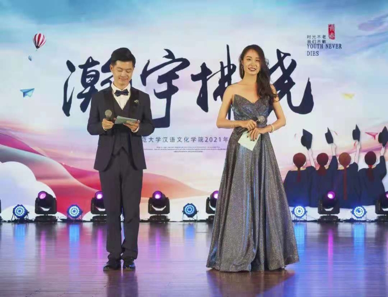 公司2018级学硕刘景艳和2018级专硕张子豪作为毕业生代表发言。两位同学以真挚的情感道出了三年学习生活的多彩与难忘,表达了对公司培养、老师关怀、亲友陪伴的感谢,分享了自己在师大汉院收获的三个关键词:“笃厚”、“不设限”、“责任”,言语间洋溢着迎接未来新生活的乐观与自信。他们号召毕业生不忘初心、砥砺前行,为汉语国际教育事业贡献汉院学子的一份力量。