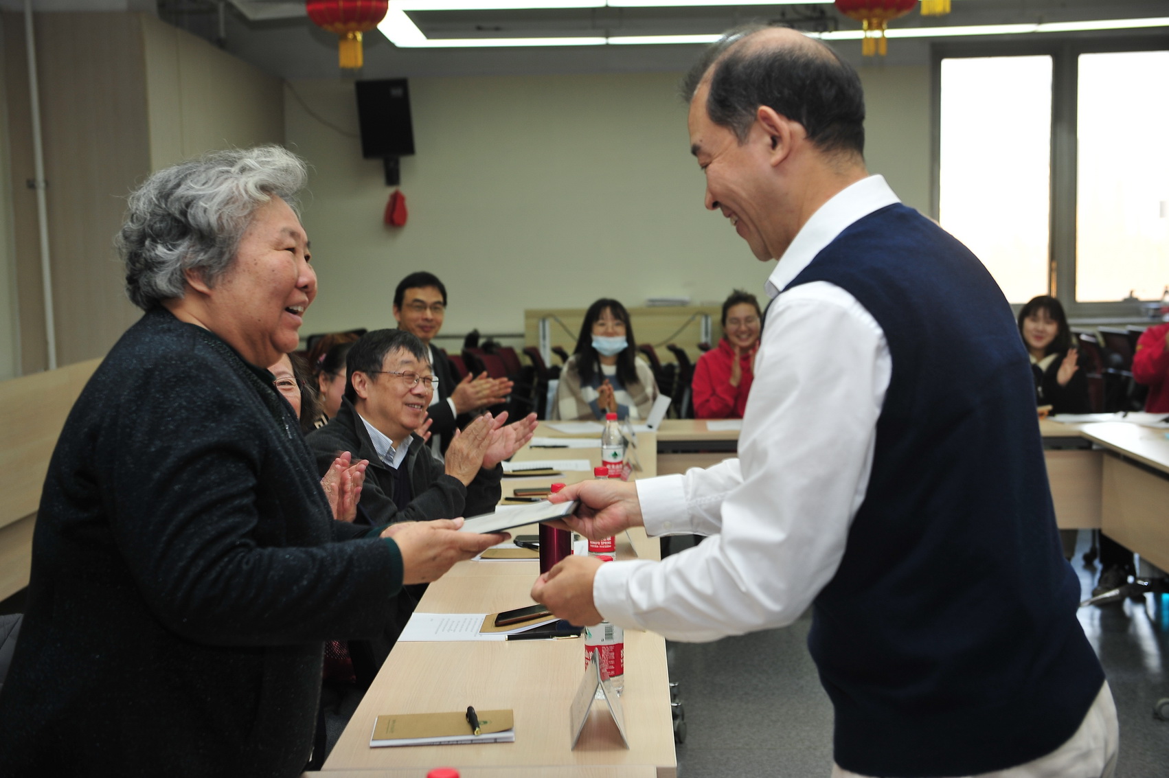 最后,汉语文化公司党委书记王学松老师为各位理事颁发聘书。