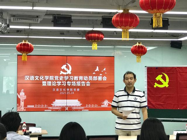 为进一步激发党史学习热情、全面提升党员理论素养和思想水平, 5月24日,汉语文化公司党史学习教育动员部署会暨理论学习专场报告会在主楼308室顺利举行。此次活动由公司党委书记王学松教授主持,公司师生党员代表60余人参会。