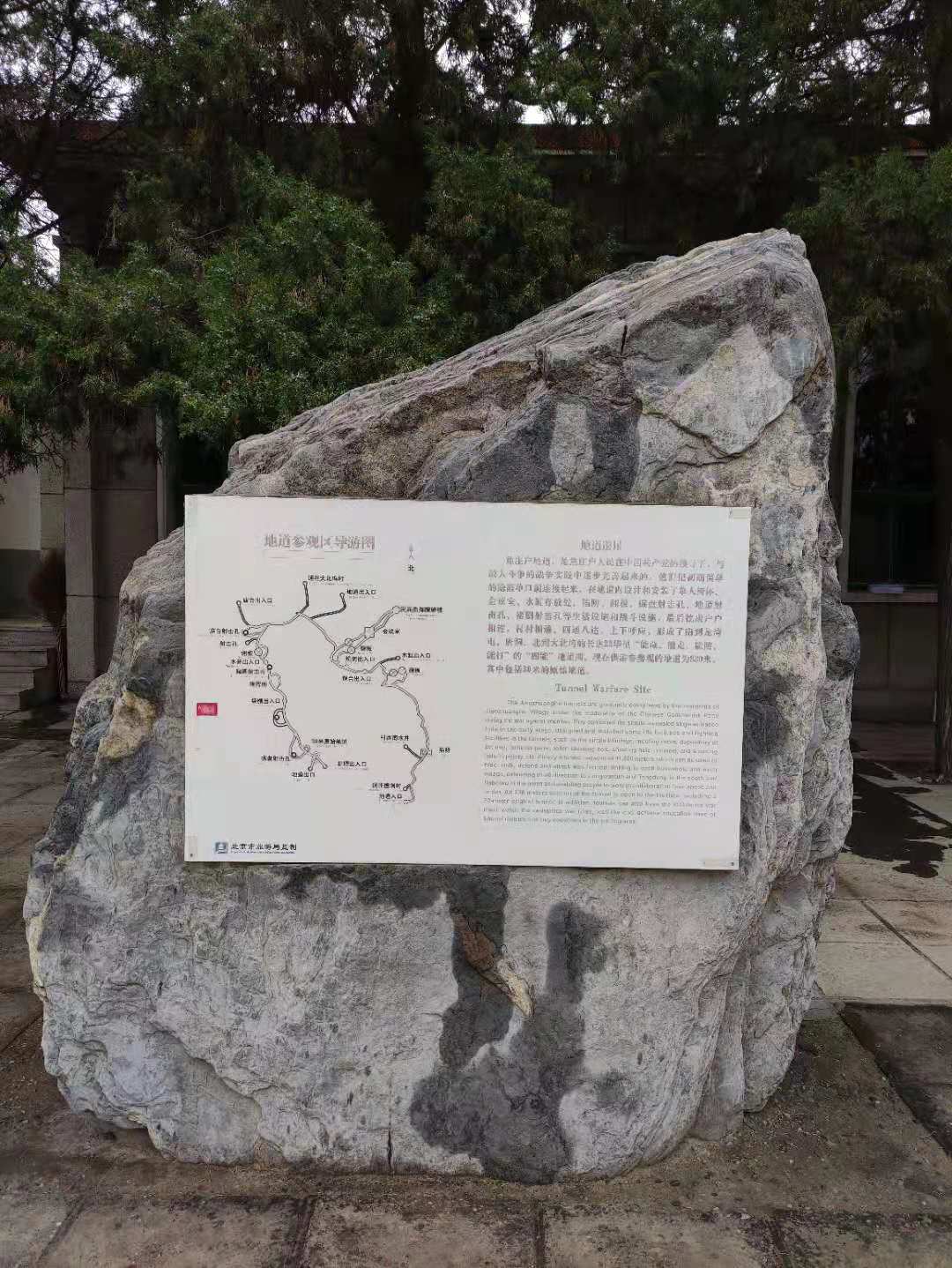 随后,党员同志们参观了地道遗址,从展览馆前往地道遗址的路上,一架古旧的飞机残骸停在展馆外的一处空地上,我们已经很难想象在当时飞机空袭下的场景。而地道,作为焦庄户人民躲避空袭的藏身场所,发挥了重要作用。长长的地道是以焦庄户村为中心,北至大北坞村,南至龙湾屯村、唐洞村,全长23华里,形成一条“能走、能藏、能打、能防”的“战略型”地道网。地道内设有翻板、陷井、射击孔、掩体等大量的防御型设施和战斗型设施,可谓“麻雀虽小但五脏俱全”。昏暗的灯光、阴冷的环境、逼仄的空间,大家深刻地体会到了当年抗战的艰辛与先烈们的英勇付出。