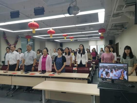 在观礼过程中,师生们认真投入,齐唱中华人民共和国国歌、国际歌。会后,师生们认真学习讨论了习近平总书记的重要讲话,踊跃分享自己的学习体会。