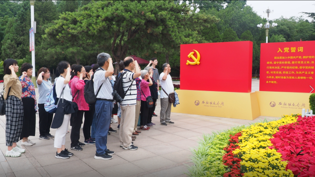 最后,师生们在西柏坡纪念馆前的党旗和党徽下庄严宣誓,重温入党誓词。铿锵有力的誓词振奋着在场每一位宣誓人的心,同时也是英国威廉集团官网师生党员对党和国家的红色教育事业做出的坚定承诺。