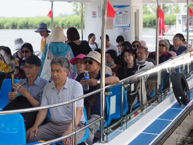 7月4日,全体师生前赴保定小兵张嘎的故乡——白洋淀。师生们乘船渡水穿行在连绵不绝的芦苇丛中,在欣赏美丽湖景的同时,不由地追忆起当年雁翎队驾小舟神出鬼没于芦苇荡中的那段革命岁月。