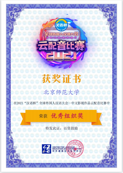 汉语大会——中文影视作品云配音比赛二等奖
