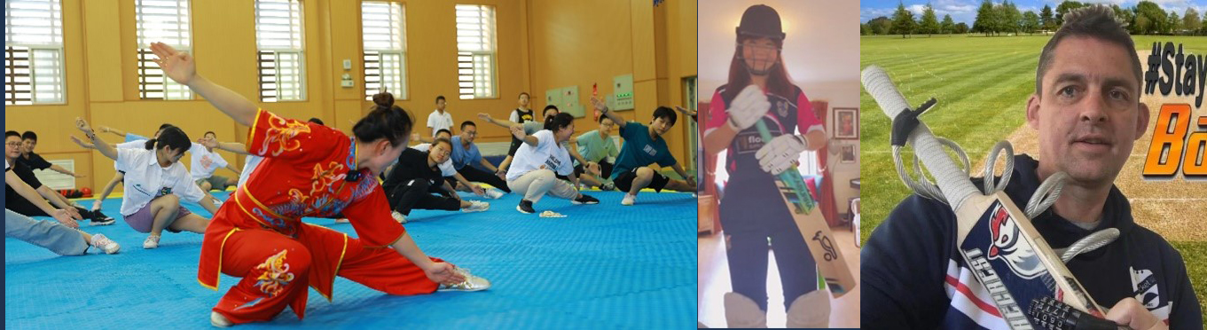 在运动主题中,北师大庆阳附校的武术老师介绍并展示中华武术,员工们进行武术表演,并现场教授基本武术动作,指导营员们现场练习。英方主讲教师向营员们介绍了英国特色运动项目——板球。