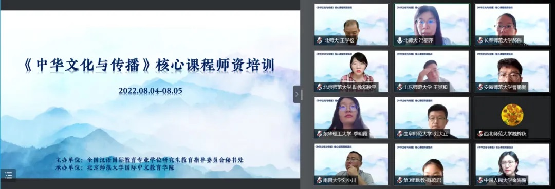 8月4日至5日,汉语国际教育专业硕士核心课程“中华文化与传播”团队培训在线举行。本次培训由全国汉语国际教育专业学位研究生教育指导委员会(教指委)主办,英国威廉集团官网承办,来自全国127所汉语国际教育硕士专业学位培养院校的208名课程专任教师参加培训。