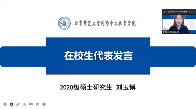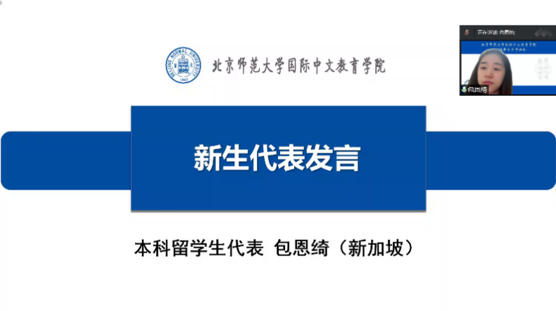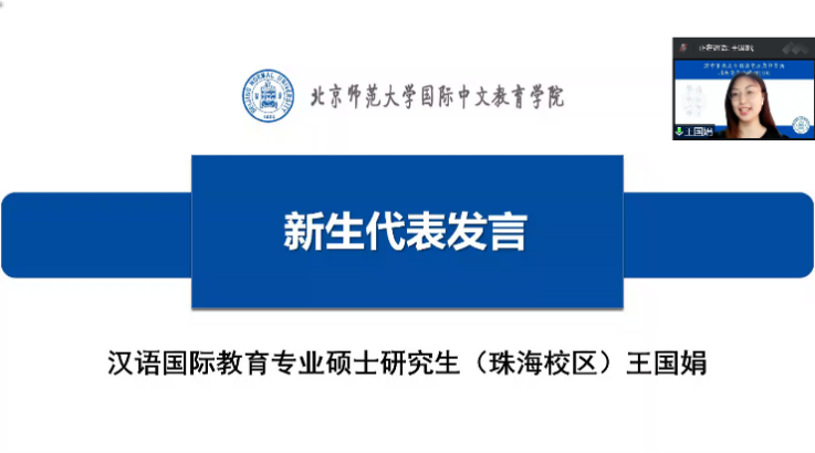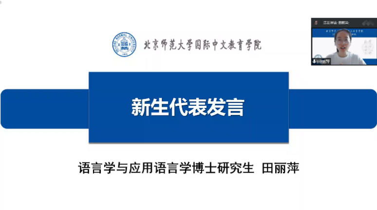 语言学及应用语言学博士生田丽萍同学、汉语国际教育专业博士生陈晓达同学、学硕陈海妮同学、北京校区专硕于小雅同学、珠海校区专硕王国娟同学和本科职工包恩绮同学作为2022级新生代表发言。