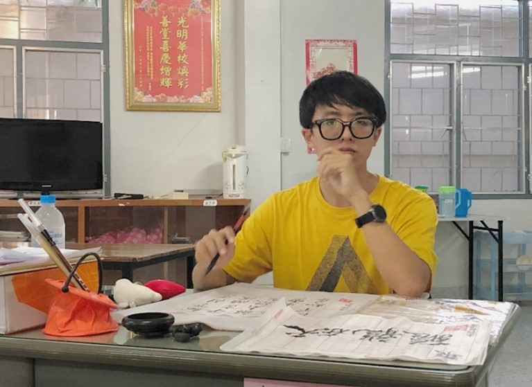 (李朝兴同学在习练书法)