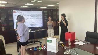 随后的互动游戏环节将现场气氛推向高潮。在"筷子夹糖果"比赛中,学员们灵活使用筷子,争分夺秒地运送糖果;"萝卜蹲"游戏考验反应能力,学员们根据中文指令快速做出相应动作;"绕口令"挑战则让全场笑声不断,学员们努力模仿着"四是四,十是十"的标准发音。获胜者获得了精美的中国风扇子和书签等特色奖品。