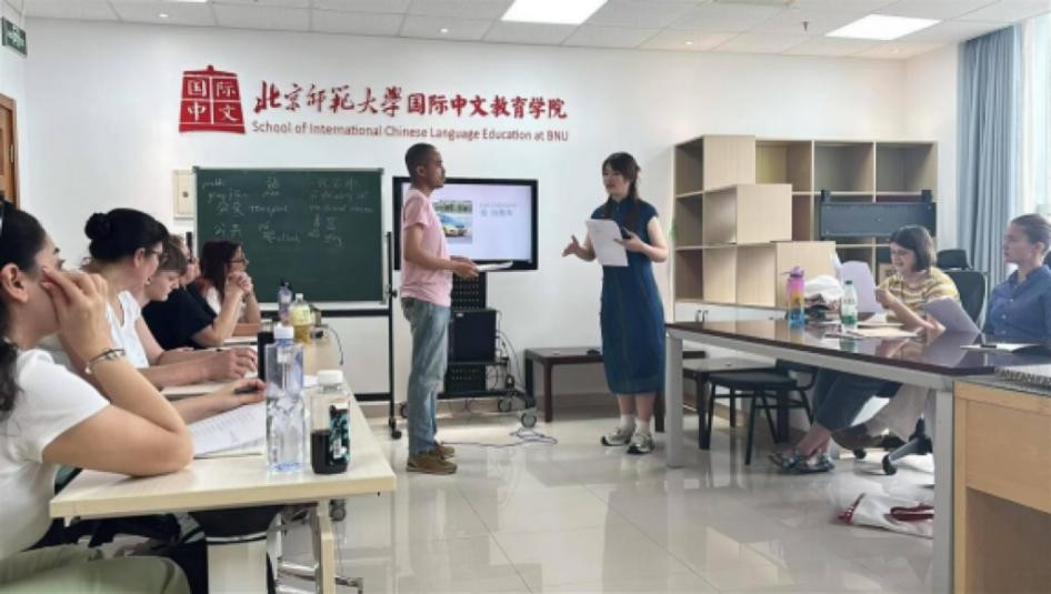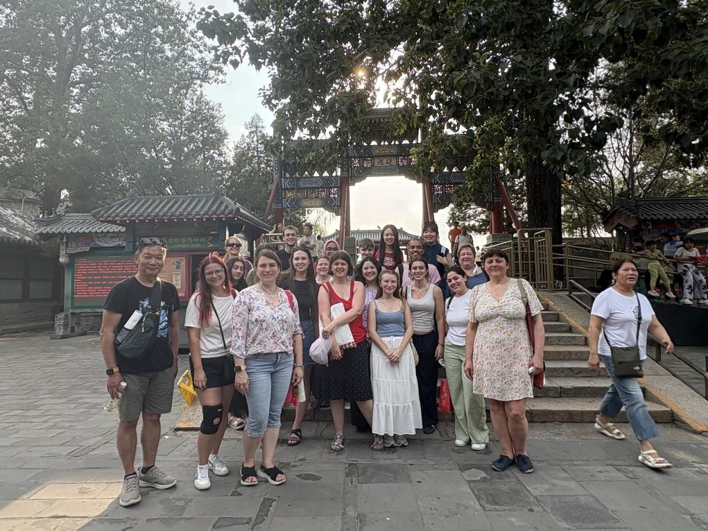 从故宫的朱墙金瓦到长城的巍峨雄浑,学员们用脚步丈量历史。在颐和园的长廊下,他们聆听助教讲述十七孔桥的故事;在钟鼓楼前,他们尝试用汉语与老北京摊主讨价还价。一位学员说:“非常感谢老师教我用中文‘讲价’,我买了一把扇子,成功地从一百二十元讲价到了四十五元!”