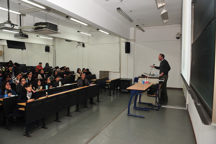 在讲座中,David Hogue先生介绍了博物馆的发展历史与现状,并借助投影设备,向公司师生图文并茂地展示了博物馆的环境与馆藏,博物馆主要藏品捐赠人Charles Freer的亚洲之行,美国著名社会活动家、罗斯福总统之女爱丽丝·李·罗斯福访问东亚诸国时留下的珍贵影像资料,并播放了历史上最早的一部关于中国的彩色纪录片,重现了一百多年前美国人眼中的中国社会面貌。