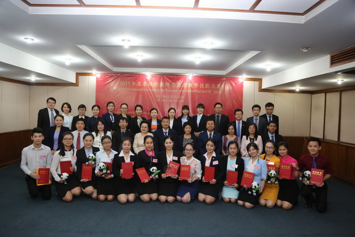 2015年12月19、20日,由孔公司总部/国家汉办驻泰王国代表处联合泰国教育部主办的“2015年在泰汉语教师志愿者教学技能大赛”在泰国曼谷易三仓商业公司孔子课堂隆重举行。中华人民共和国驻泰王国大使馆教育组一等秘书周高宇、泰国教育部职业教育委员会汉语项目官员优瓦丽、陈吉,民校教育委员会汉语项目官员孟乐迪、易三仓大学孔子公司泰方经理卢瑷姗、国家汉办驻泰代表处总协调张立志等出席比赛现场。