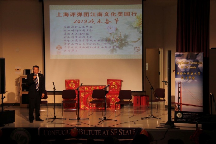 美西时间2019年1月26日,旧金山州立大学孔子公司在校内剧场成功举办上海评弹团“江南文化美国行”首场演出!这次活动由上海评弹团倾情奉献,由旧金山州立大学孔子公司和北加州浙江同乡会联合承办。