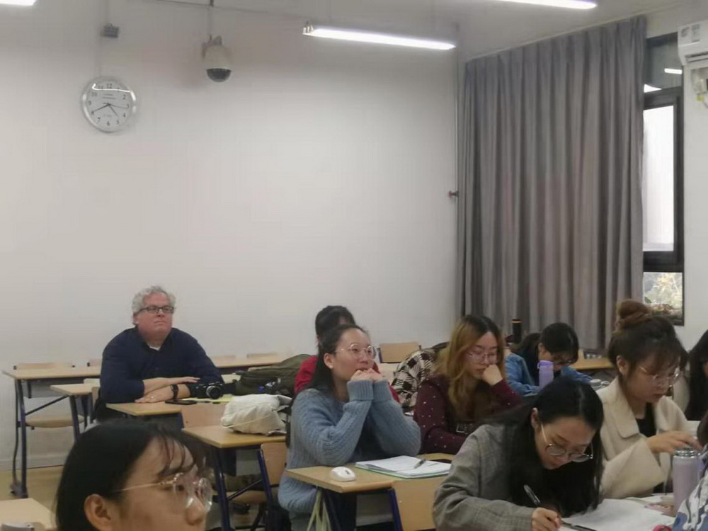 10月30日下午,Gavin Tritt走进公司2019级汉语国际教育专业的英语口语课课堂,了解欧柏林大学派往公司担任外教的Mackenzie老师的教学情况。Gavin肯定了Mackenzie的教学工作,并赞赏同学们的汇报内容丰富精彩、语言表达流畅。课后,Gavin和部分同学进行了深入交流,解答了同学们关于欧柏林大学中文助教项目的部分疑问并表示期待同学们的到来。