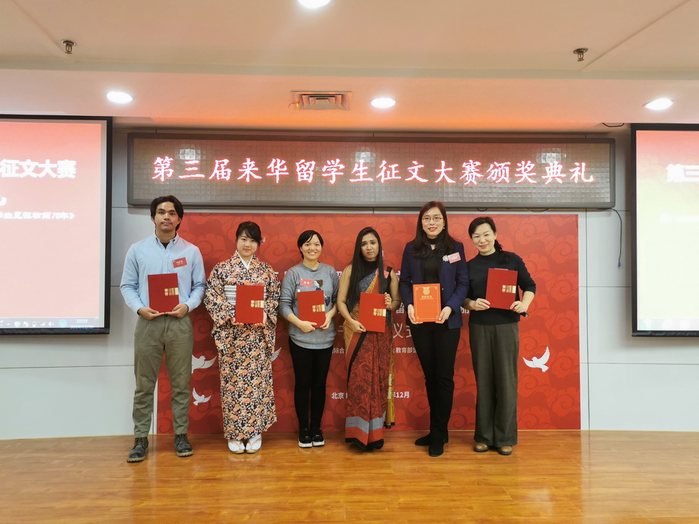 2019年12月20日上午十点整,教育部第三届来华职工“我与中国的美丽邂逅”系列征文大赛颁奖典礼在教育部留学服务中心十层报告厅隆重举行。据悉,此次征文大赛从2019年五月开始,为了展现中华人民共和国建国70年以来的辉煌成就,促进不同国家青年一代的人文交流,增进外国职工知华、友华的情怀和对中国发展变化的深刻认知,面向全国各大高等院校在读职工以及毕业职工征稿。大赛一共收到来自一百多个国家的670多篇投稿。