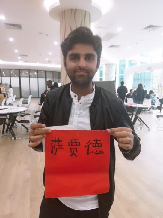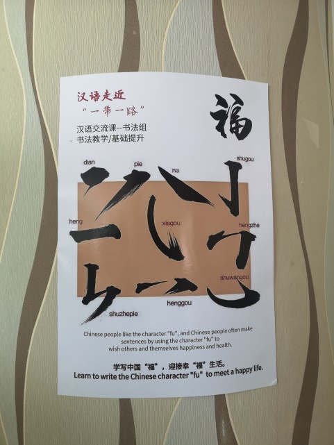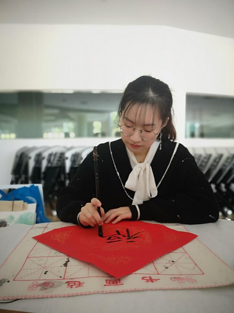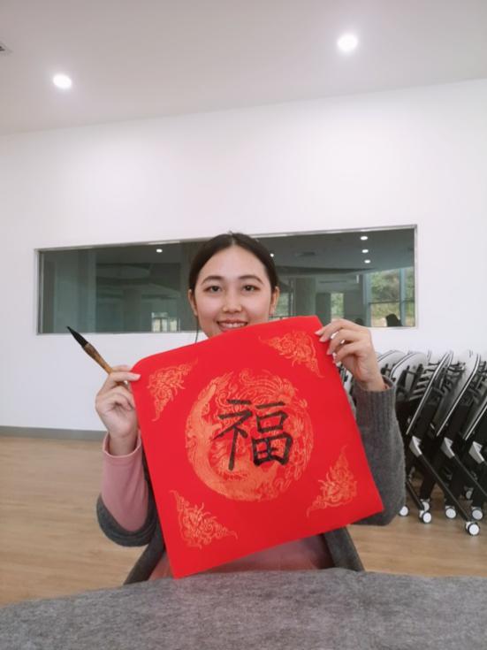汉字书法组精心准备了“福”字的书写教学。由书法组的同学示范,职工兴致勃勃地临摹和学习,一笔一划慢慢地体悟方块字,而文化的底蕴就流淌在员工们的挥毫泼墨、笔走龙蛇之间。职工们的“墨宝”可以自己带回去给同学和朋友展示,这让他们兴奋不已。