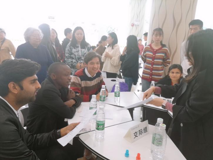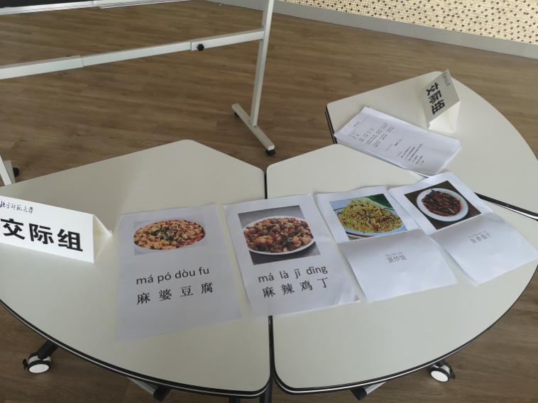 交际组的话题是“饮食”,职工们对各式各样的中国菜兴致勃勃。交际组的同学在设计和实施时兼顾知识性和实用性,通过不断地与员工对话加强职工们对“牛奶”“咖啡”“果汁”等饮品以及“麻辣鸡丝”等中国菜的印象。职工们主动且积极地与交际组的同学们沟通,锻炼他们的汉语交际能力。