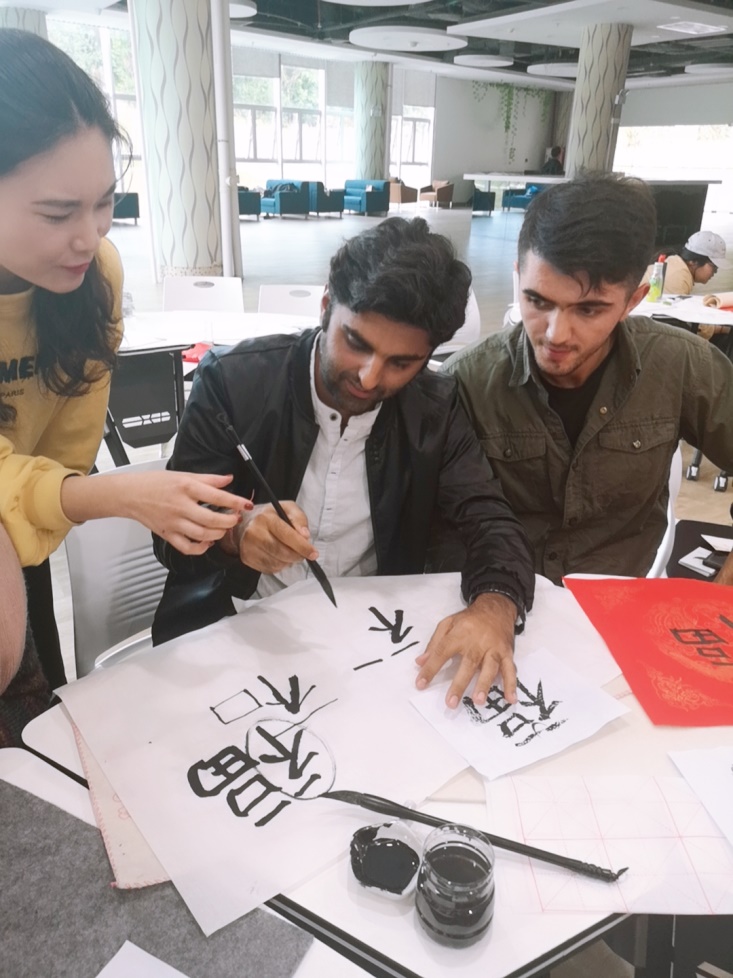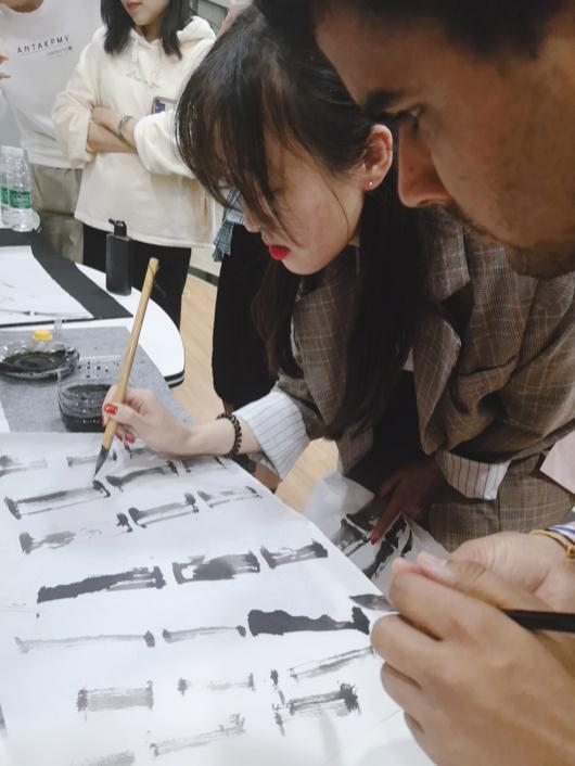 活泼但认真的一轮语言知识学习过后,学习交流会的中心开始转向文化组和汉字书法组。