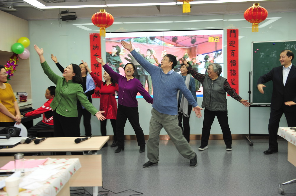 15时30分,联欢会在文字词汇教研室各位老师嗨翻全场的舞姿中拉开序幕,一曲结束,应广大观众的热烈要求,陈绂老师、张和生老师又带队进行了返场表演,再次将气氛推向高潮。