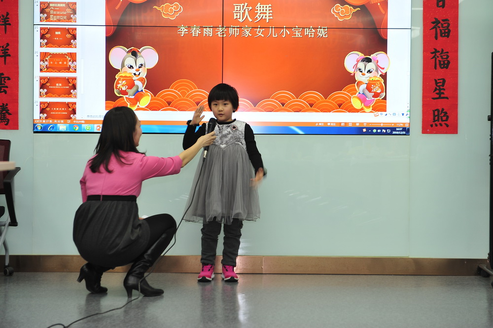 除了各教研室的老师亲自上阵之外,小朋友们也为大家带来不少惊喜。李娜老师的儿子果果表演了《笑话小串烧》,步延新老师的女儿悦悦表演了《抖空竹》,徐棠老师的儿子牛牛表演了舞蹈《We Will Rock You》,李春雨老师的女儿宝贝哈尼表演了歌舞《你笑起来真好看》。虽然小演员们还在过儿童节,但气场、台风丝毫不输长辈。