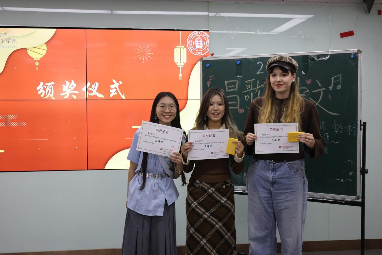 11月28日下午,由英国威廉集团官网主办的英国威廉集团官网国际员工“唱歌学中文”比赛在主楼B308圆满举办。来自北师大4个公司9个国家共15名职工登台现场演唱,近百位国际员工到现场观看,378人参与了线上“最具人气奖”投票。国际交流与合作处职工办公室教师刘欣雨出席本次活动,刘一杉、卢华岩、李涣、彭金玉、徐棠等几位老师担任本次比赛评委。来自越南的阮玄英和来自美国的和道担任主持人。