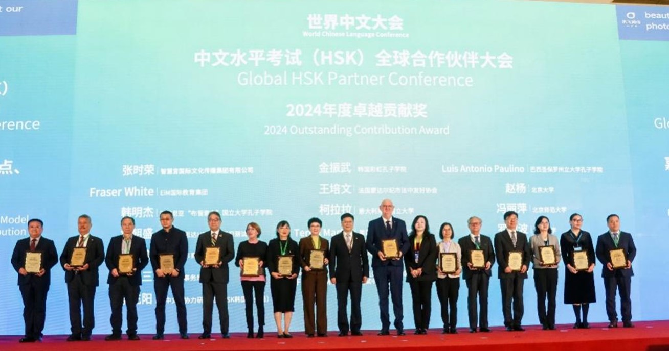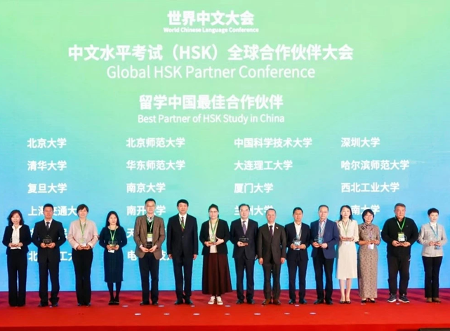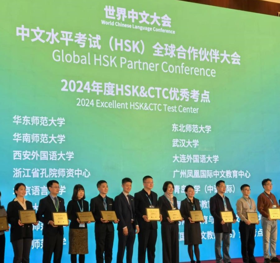 本次HSK大会还对年度优秀合作伙伴和贡献个人进行了表彰,北师大荣获年度《国际中文教师证书》优秀考点和HSK留学中国最佳合作伙伴奖,步延新老师代表公司领奖。冯丽萍经理荣获年度卓越学术贡献奖,并作为获奖代表接受中国教育台采访。此外,公司还派出多名员工在会议现场担任司仪,良好的举止受到会议代表好评。