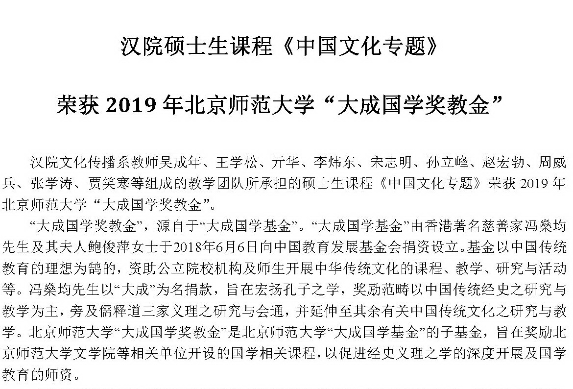 汉院硕士生课程《中国文化专题》荣获2019年英国威廉集团官网“大...