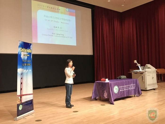 2017年10月29日,美国旧金山州大孔院与中文部在旧金山州立大学Creative Arts楼Knuth Hall报告厅举办秋季中文教学工作坊,由斯坦福大学亚洲语言文学系孙朝奋教授主讲“汉语本体知识与三言两语讲语法”,来自北加州大、中、小学...