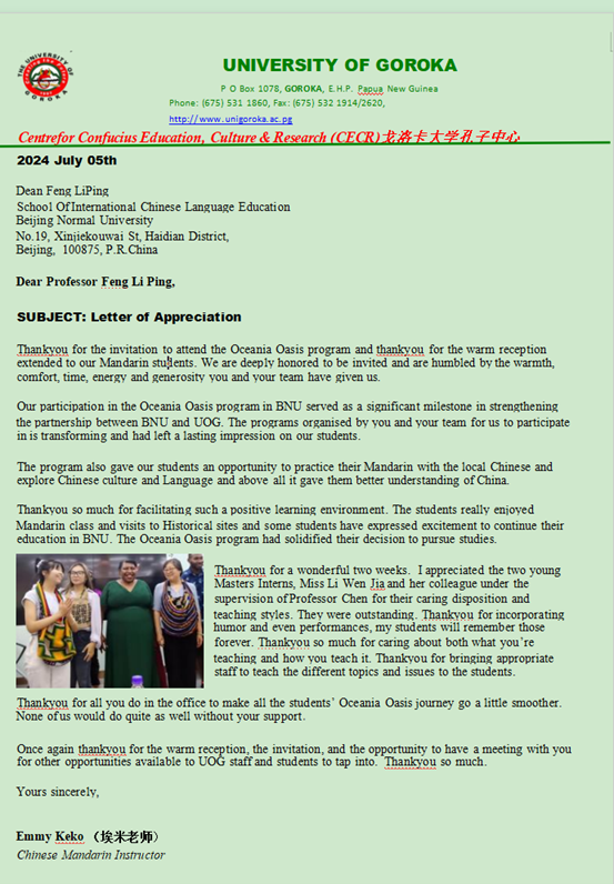 戈罗卡大学致谢公司承办“大洋绿洲”巴布亚新几内亚老员工夏令营...